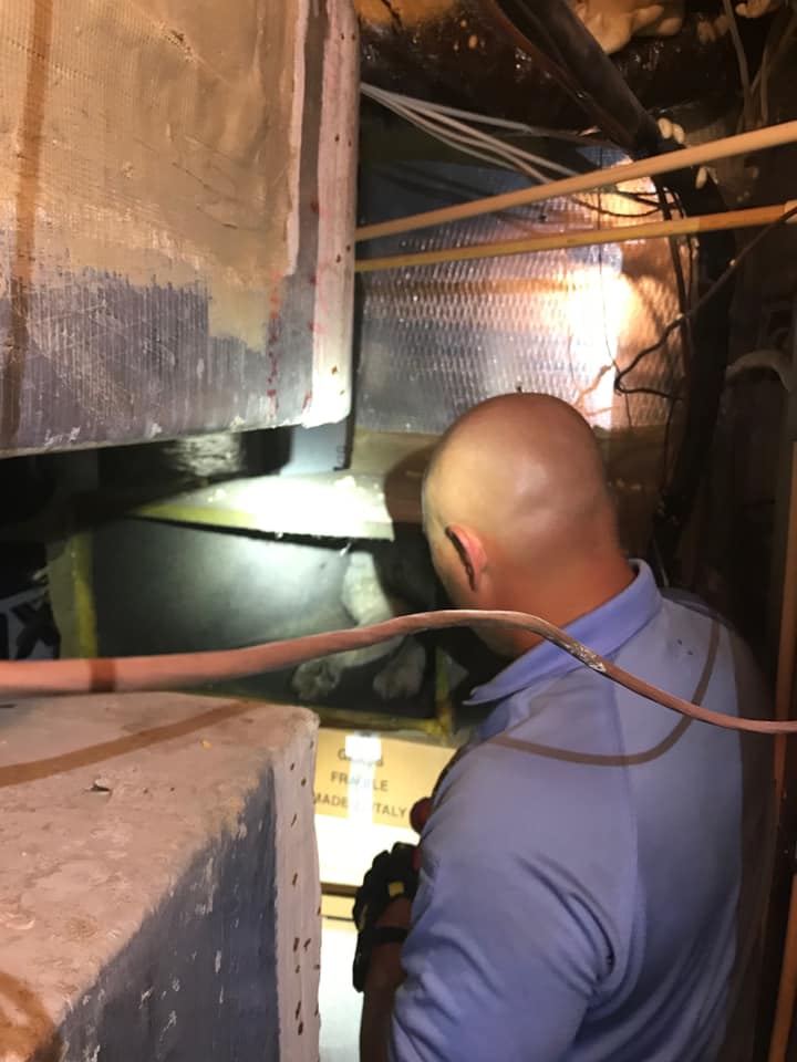 The firefighters then had to make precise cuts to the vent to free the dog without any harm. “We just took a utility knife to the duct work and kind of just cut in pieces and made sure we weren’t cutting the dog,” Reyes told News 6.