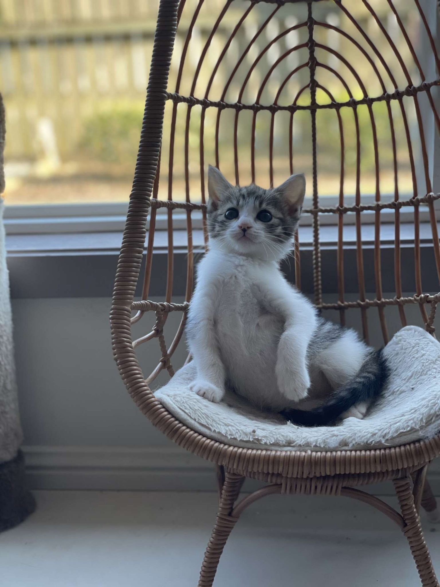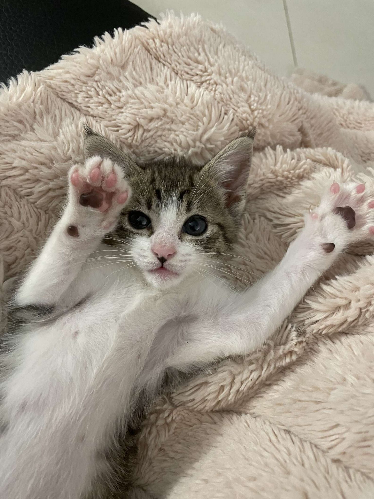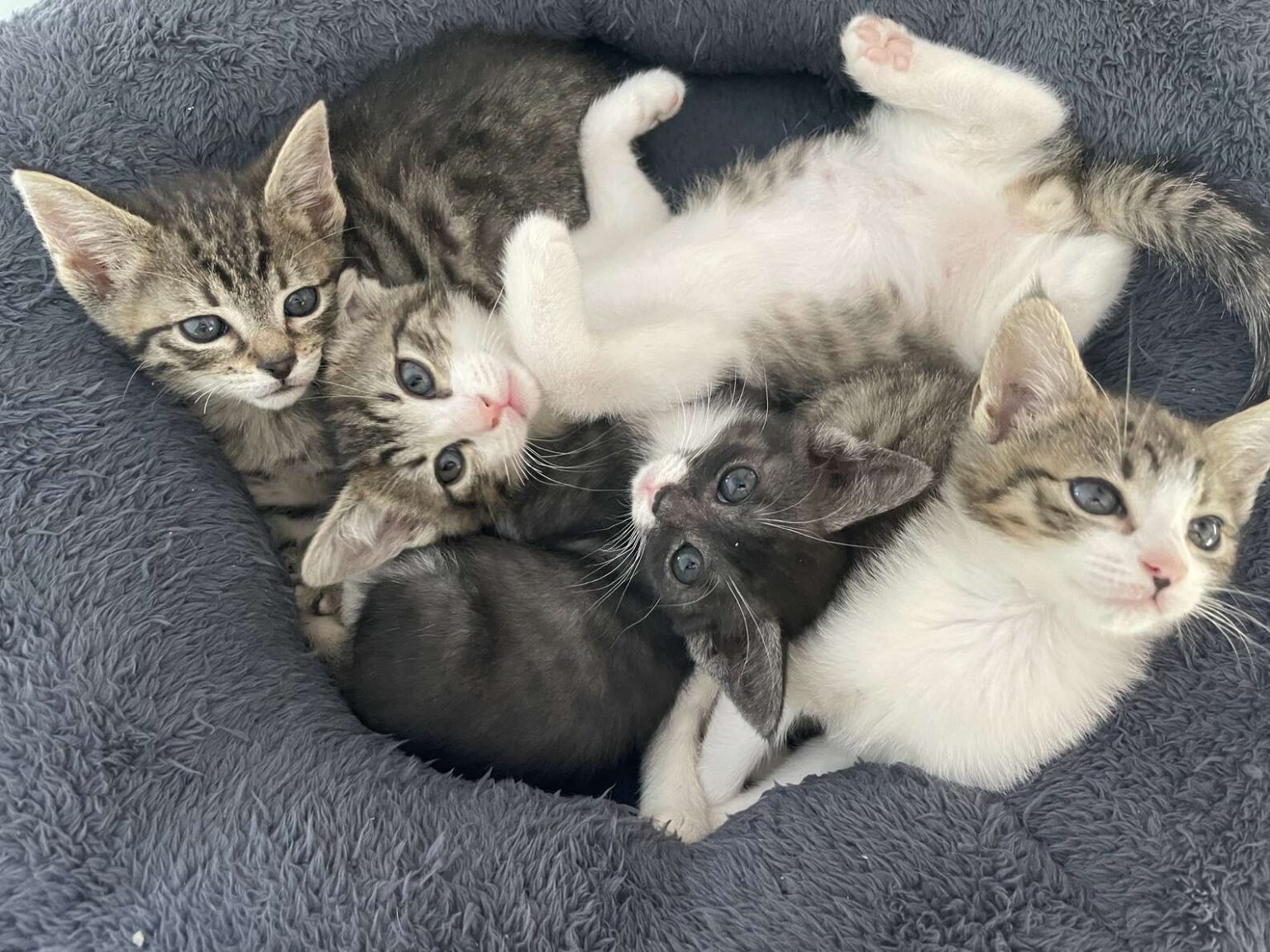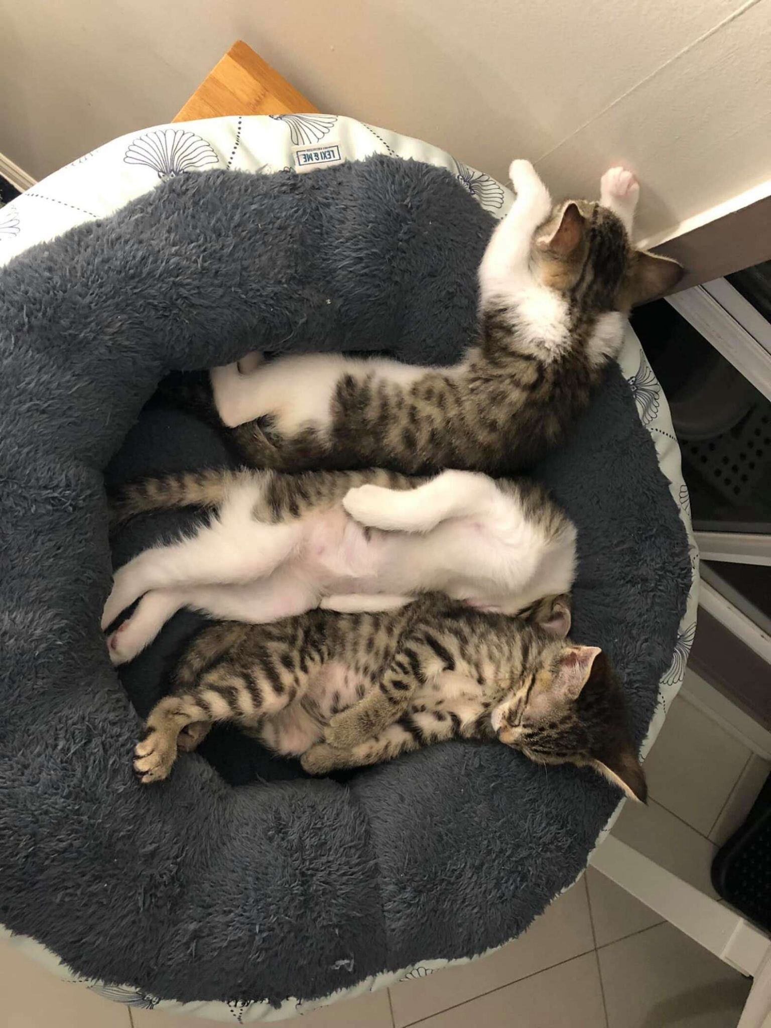 Namaari looked like she had no head curled up in a pile with her brothers, TukTuk and Boun, and her foster parents couldn’t help but giggle at their now decapitated kitten.