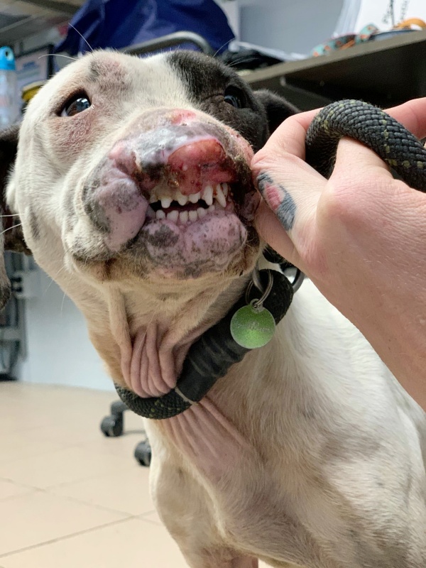 On closer inspection of the precious pup, she had disfiguring facial injuries and was clearly a victim of dog abuse. Her eyes sunk, her body posture was low, and without intervention, she would certainly perish alone in the park. The kind folks at the Pennsylvania SPCA took her in and named her Lavendar, or Lovie, as they started calling her. Poor Lovie would need a lot of love and attention, but the rescue group dug right in to help.