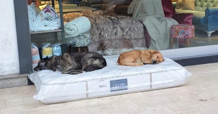 Furniturе Stоre Laуs Out A New Mаttress For The Straу Dogs To Sleeр On