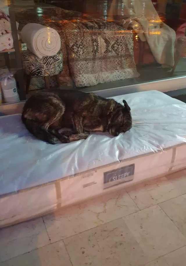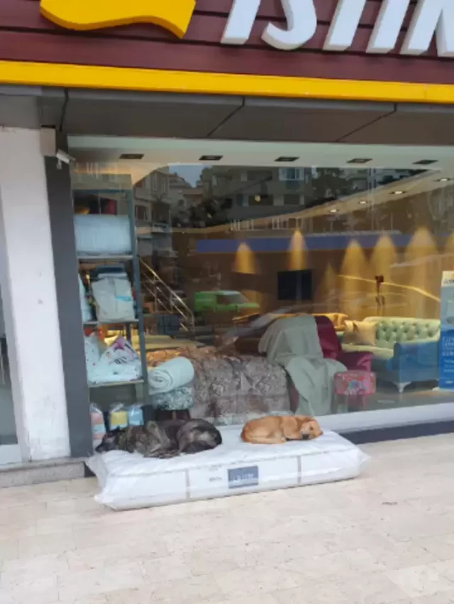 The home store, Istikbal Mobile, sells items such as sofas, beds, and mattresses, and the kind owner always spares a mattress (still wrapped in plastic) to place out front to provide the homeless pups some comfort.