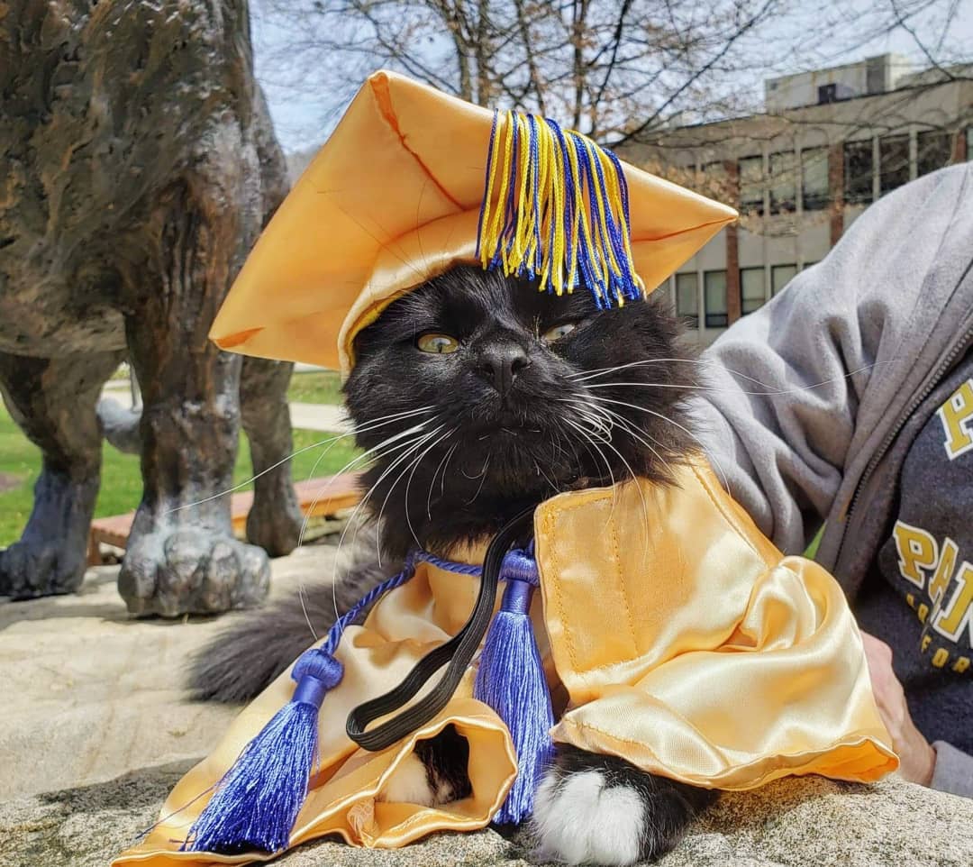 Due to the pandemic, the graduation ceremony was kept short and quick, and Salem was delighted to be a part of Hailee’s special day. Salem and his gorgeous graduation attire were a hit with everyone.