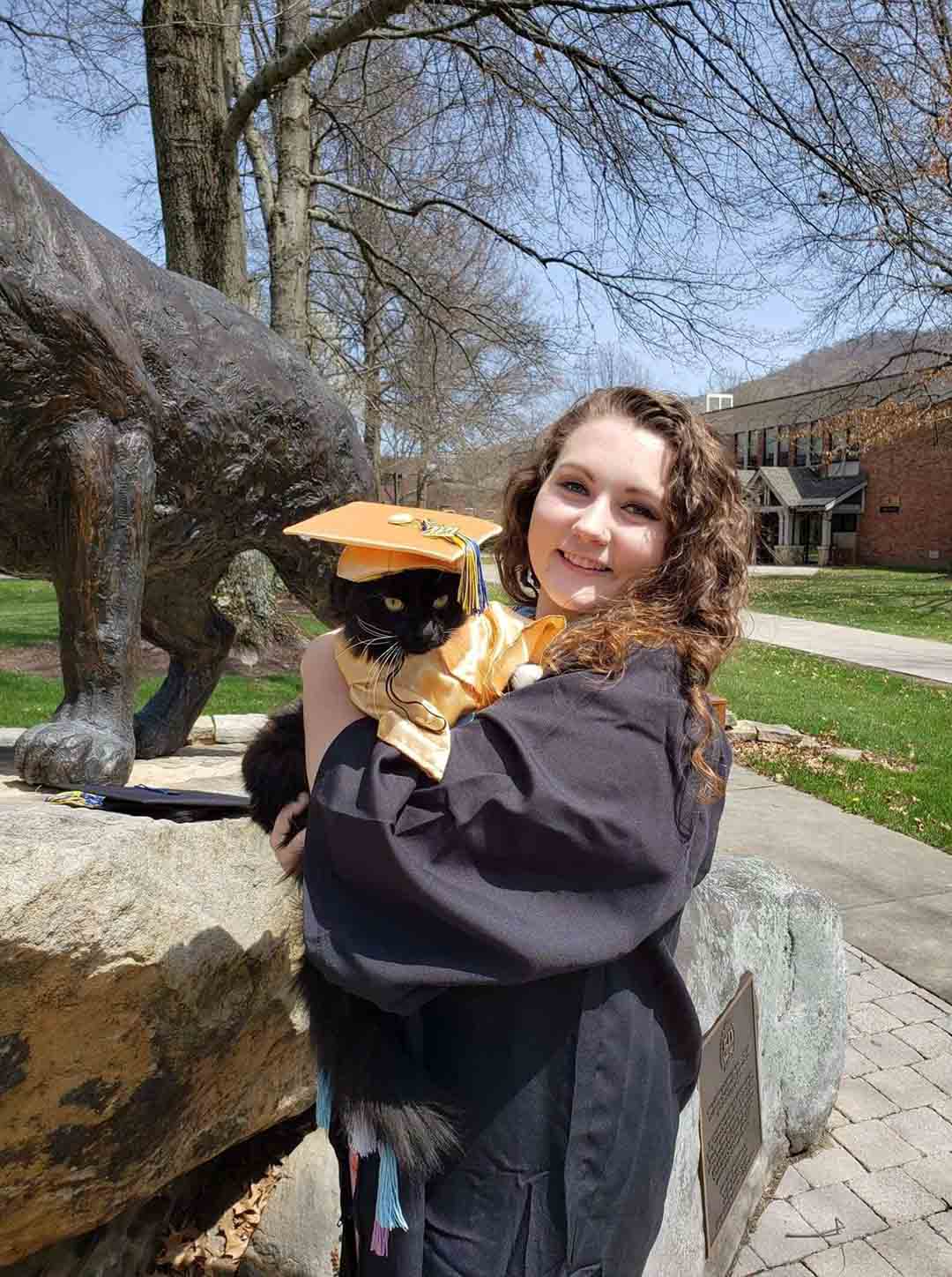 When Hailee was ready to finish her college studies, she realized she couldn’t do it without Salem’s help, so throughout her final year, the lovely black feline became her emotional support cat.