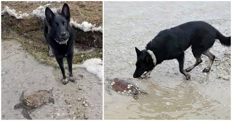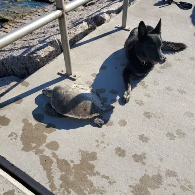 Saul aka Salsa, a German Shepherd trained detection dog for K9s 4 Conservation, was also on the scene to assist the people in helping the turtles.