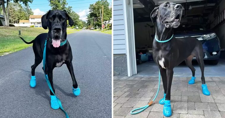 When Hooch’s mother spotted “Crocs” for dogs advertised online, she knew she had to get a pair for Hooch and give them a try.
