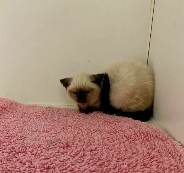 The kitten was afraid and do not let anyone touch her. “She was super scared and very hissy at first. No one could touch her,” Kendal says.