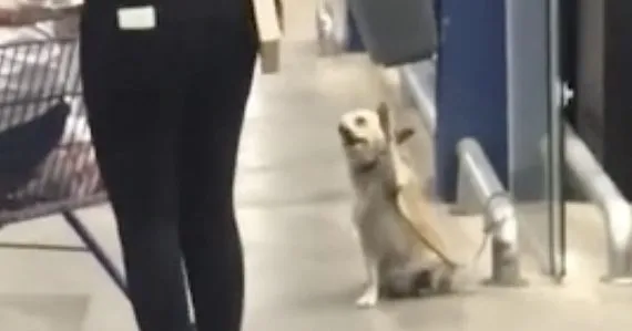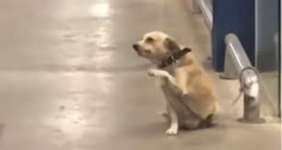 The good boy in the video below was tethered outside of the supermarket while his owner went inside quickly for a few things.