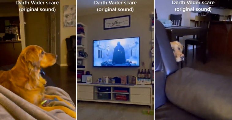 In a viral TikTok video, a golden retriever named Ellie watches the original 1977 film. But when the menacing Darth Vader makes his first appearance entering the rebel ship, even she knew that it meant trouble.