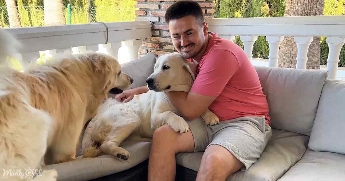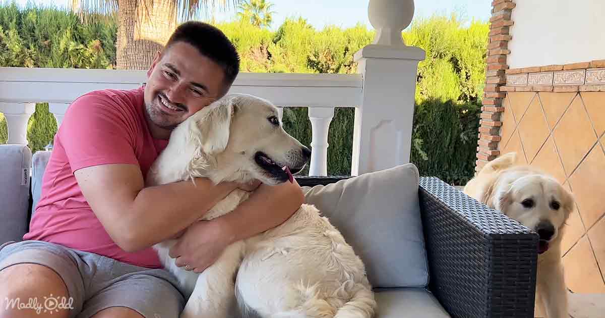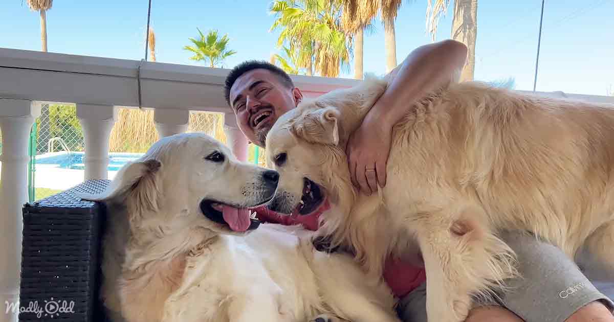 Something like this happened recently with a family in the US. The family had two Golden Retrievers, Bailey, and Mia. Their dad decided to hug and caress Mia in the absence of Bailey. However, nothing would stop Bailey from getting his share of the love from their dad.