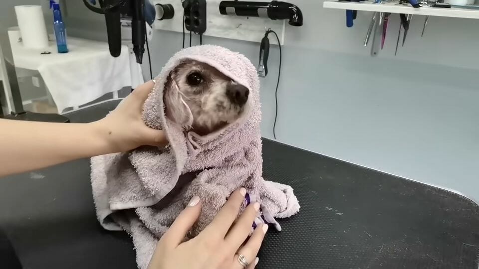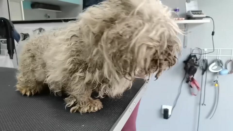 According to the video, the dog was found on the street. It isn’t known how long she was a stray for, but it was clear she was in desperate need of a little human care.