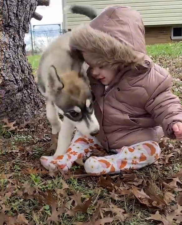 Well, this is exactly what happens in the case of baby girl Hazel and baby Husky Rio, who arrive into the world at the same time. Jen, Hazel & Rio’s mum, remembers the early days when the two began exploring the house together. She recalls that they were always together in whatever they did.