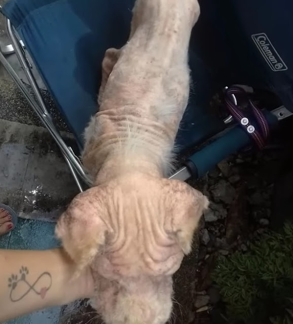 With a high infection and parasite infestation/mange on his skin, severe anemia, previous trauma to his hip and femur bones, and a crack in one leg. With his cherry eyes making it difficult for him to see, Potchie finds himself unable to move his hind legs.