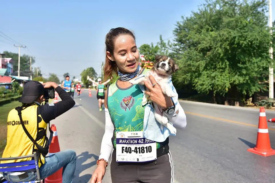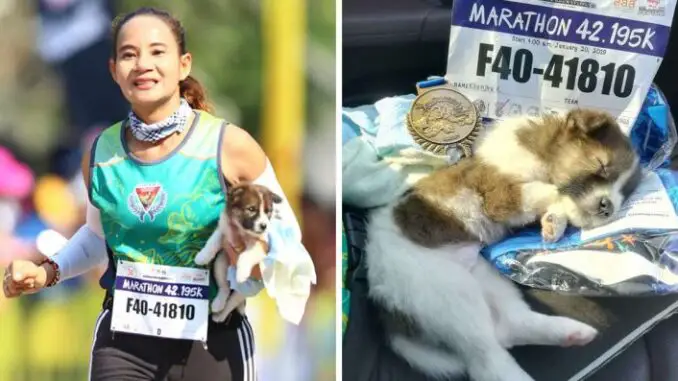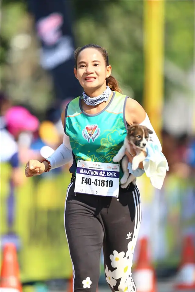 A true hero has emerged from the streets of Bangkok, Thailand. Khemjira Klongsanun, a marathon runner, has gone above and beyond her call of duty by rescuing a helpless puppy during a 26-mile race! The adorable pup was stranded on the side of the road, lost and alone, until Khemjira spotted him and immediately took action. With a heart full of compassion and determination, she scooped up the furry friend and carried him for the remainder of the race. This act of kindness not only saved the puppy’s life but also touched the hearts of people around the world. Khemjira’s selflessness is an inspiration to us all and reminds us that even in the midst of competition, love and compassion can prevail.