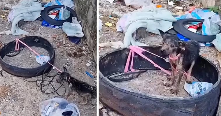 “There are really no words to describe how I felt at that moment! The dog is adorable. There’s his poop here, which proves he’s been chained here for days!”