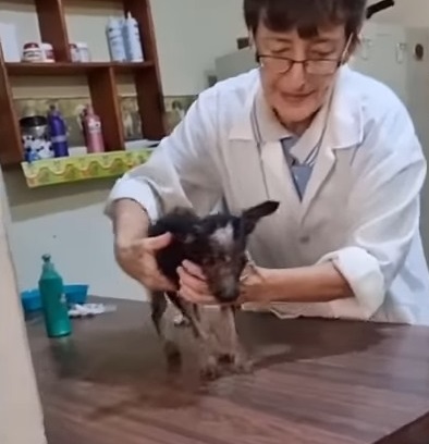 He is finally safe once the chain was removed. They took him to the clinic Vet because of his terrible condition.
