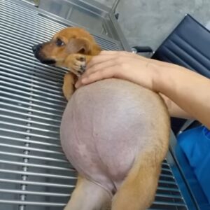 Daisy is a two-month-old puppy who was resting on the ground, unable to move. Her belly was enlarged and filled with liquid, making breathing difficult. With no one to care for her, she appeared fatigued and helpless. However, a kind girl picked her up and hurried her to the nearest veterinarian facility, where physicians fought valiantly to save her.