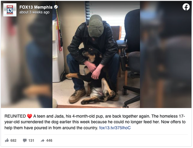 But when word got around about a homeless teen who gave up his dog, people were moved to help him out, leading to a sweet reunion.