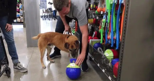 And this is a dog who’s never been in a pet store before and probably never seen a toy, so to say he was excited is an understatement!