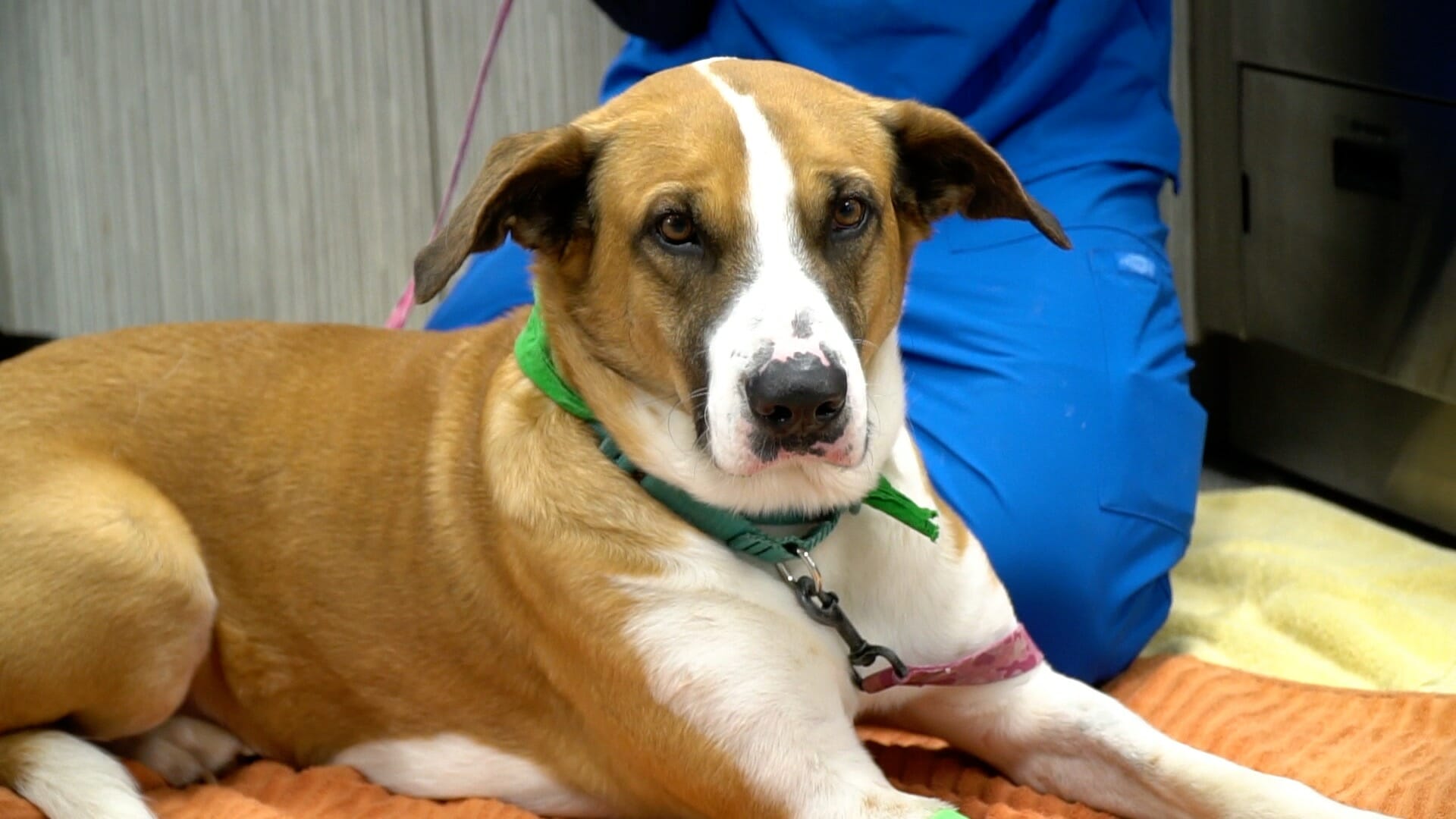 Phoenix is a 4-year-old Saint Bernard/shepherd mix who is “near and dear to the hearts of many staff” at the San Diego Humane Society, according to a press release.