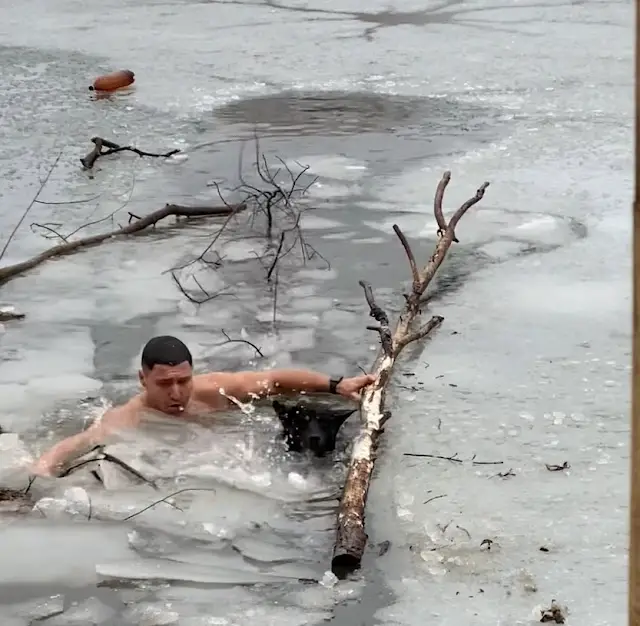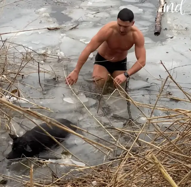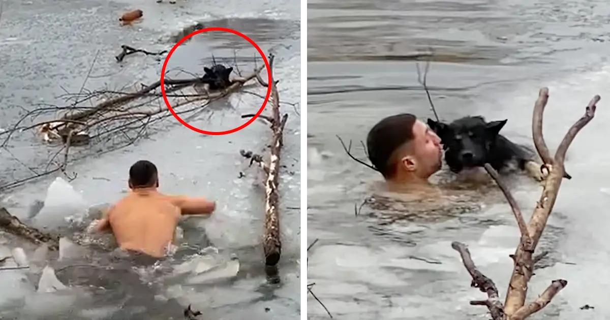 Going back to the video, we can only admire the man who was brave enough to pull the dog out of the very cold water. Thank you.
