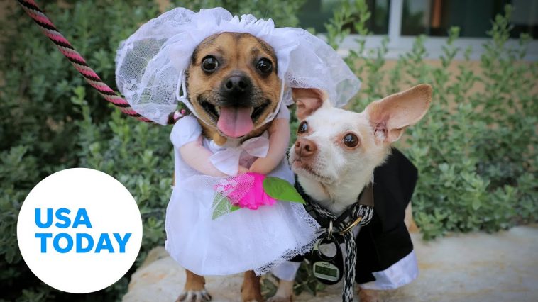 Two surrendered Chihuahuas mixes at a Texas shelter celebrated their love by having a wedding ceremony.