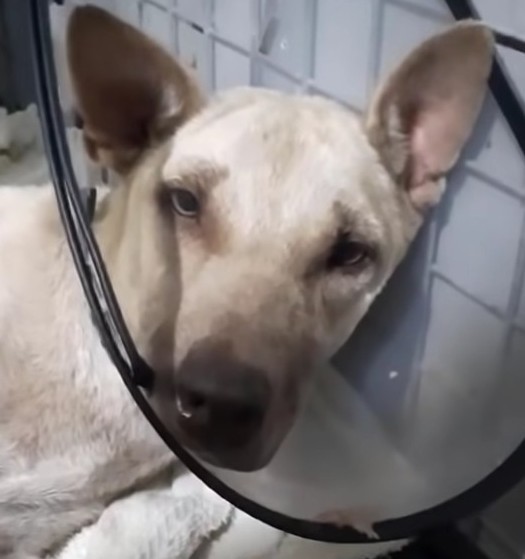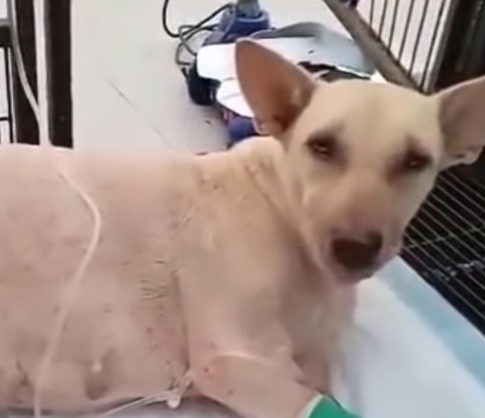 A groupe of volunteers have rescued the dog and took her to a local shelter. She appears to be paralyzed or to have a broken leg. Sinead is her given name (pronounced shinade).