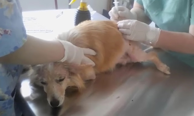 She remained on the street for 4-5 hours until rescuers learned about her case and rushed her to the vet.