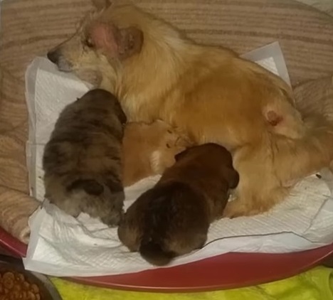 According to The Benguin, a team of rescuers quickly came to her aid along with the puppies. When they learned about her situation and arrived to pick her up four hours later, she was still lying outside, unable to move, with her three babies by her side.