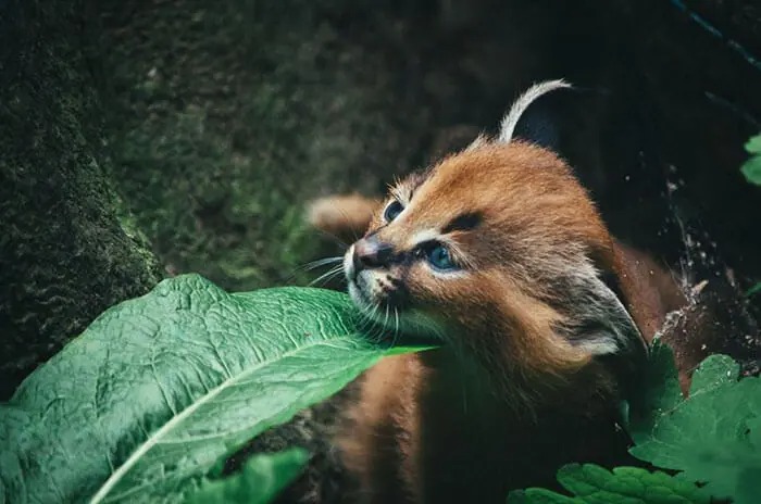 #5 A teenage caracal has different short-eared tufts and blue-colored eyes