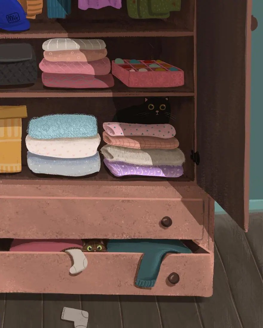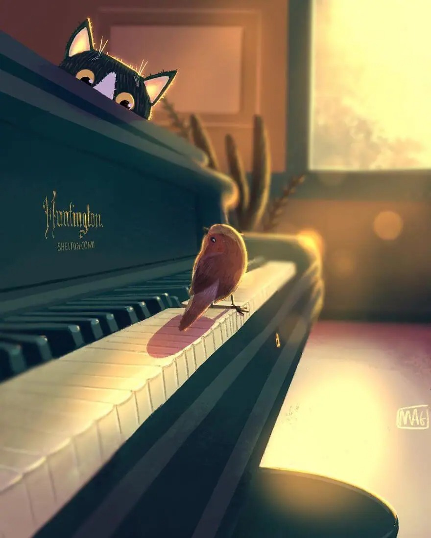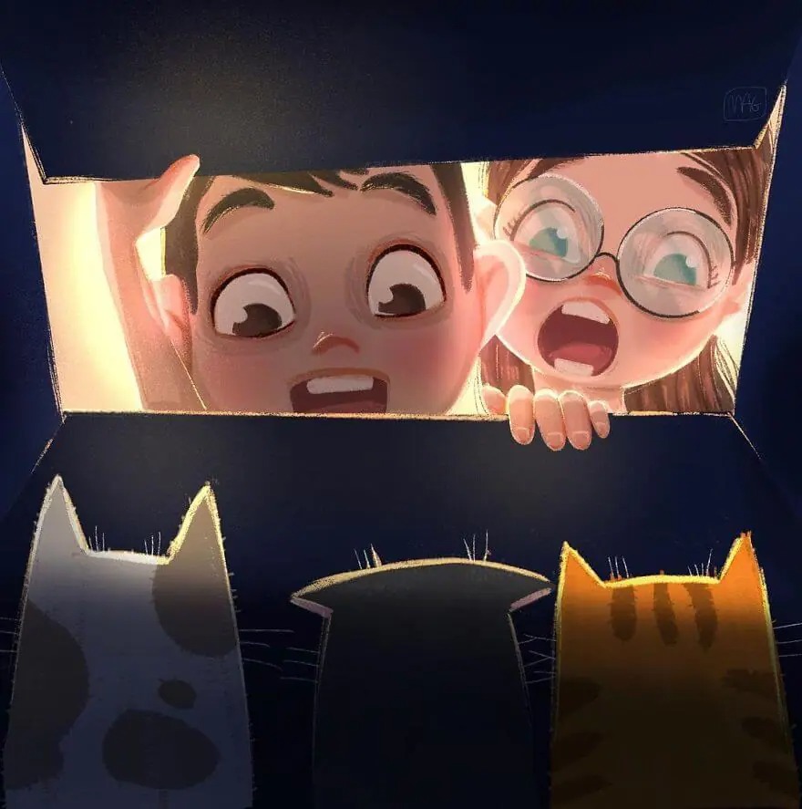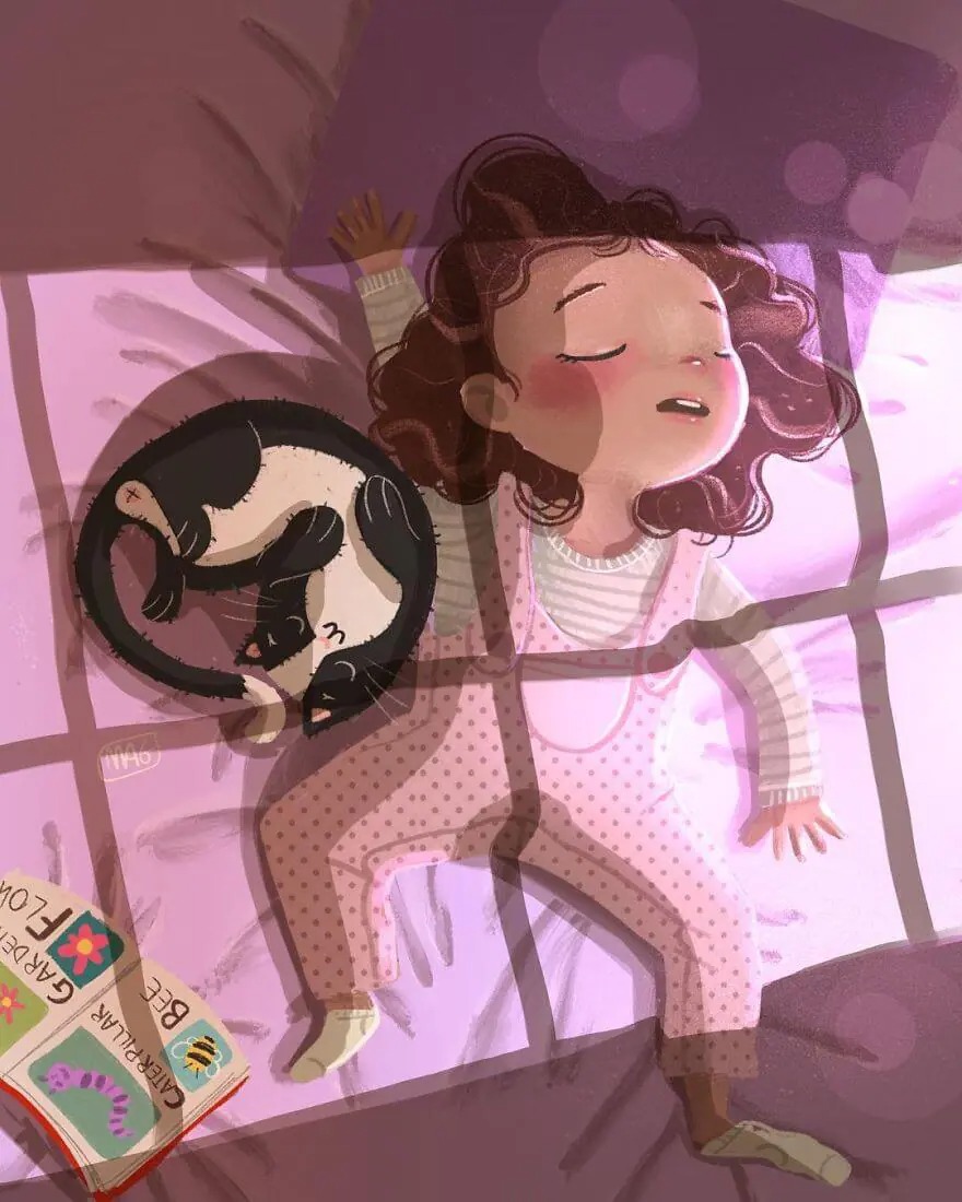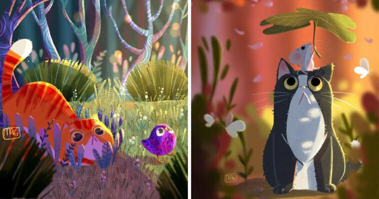 Do you still remember the moment when you first got a cat? That precious time is priceless and I guess the feline will feel the same. While most of people who don’t like cats because they think and always judge cats are rebellious, malicious, and so self-interested that they are fed up with, cats have a lot of adorable sides: curious, cuddly, and affectionate! You don’t really know how cats actually are until you adopt them, let them step into your life. An Italian illustrator artist Margherita Grasso is excellent at precisely depicting the true colors of cats when those people never see it. His drawing style is quite dreamy, well colored, and detailed which have made him earn almost 25K artsy followers on Instagram and lots of appreciations on Behance.