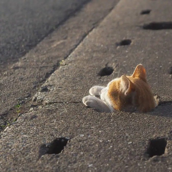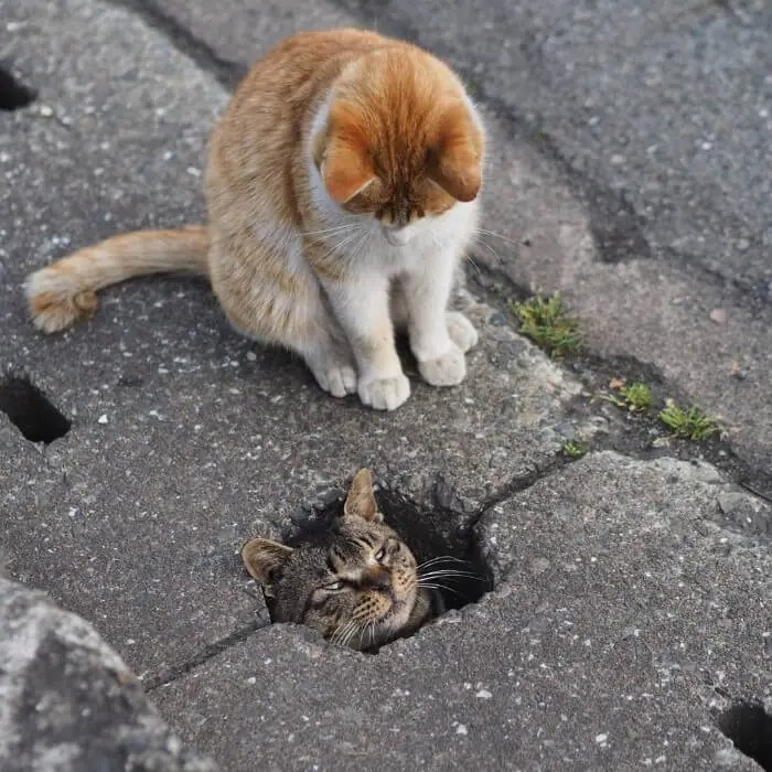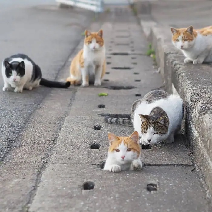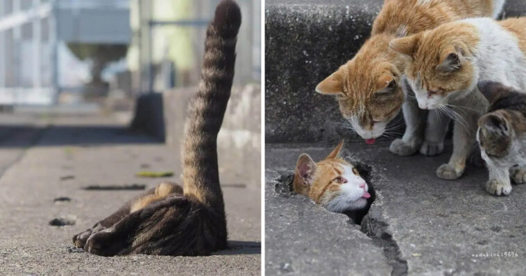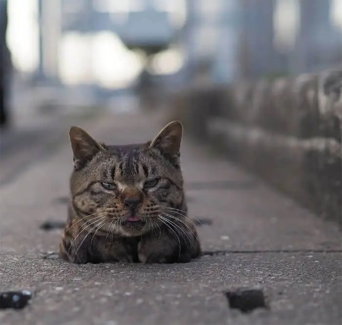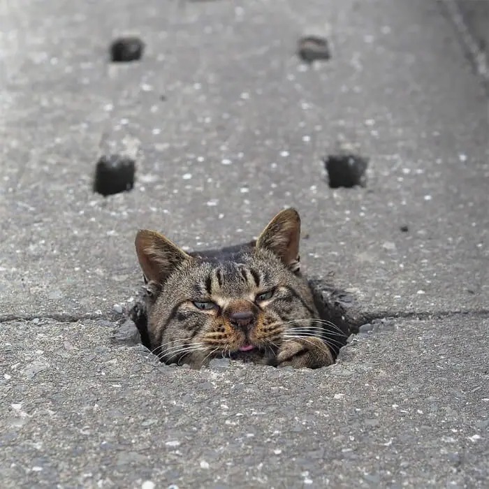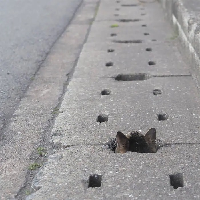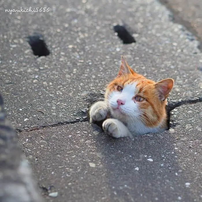 According to Nyankichi’s naturally perfect shots, we can assume that cats have actually come in 2 states: solid and liquid just by squeezing their fluffy bodies into those drain pipe holes and voilà, the new playland is made! No need for any deluxe toys or better conditions, stray cats knows what they are creating and enjoying.