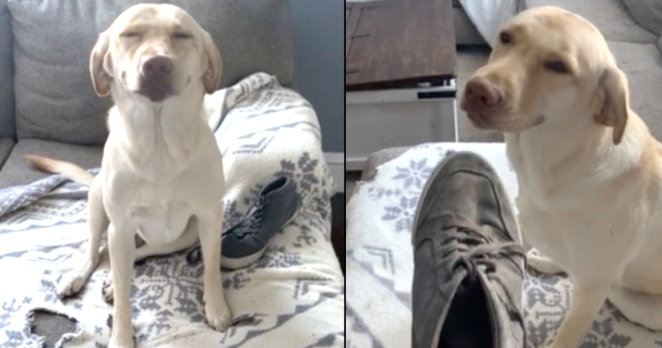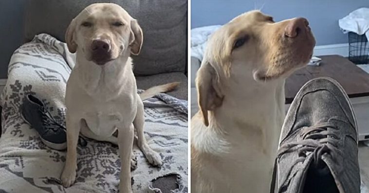 Sorry not sorry. Rudee the Lab has absolutely no regrets after chewing up Mom’s shoe, even after getting busted!