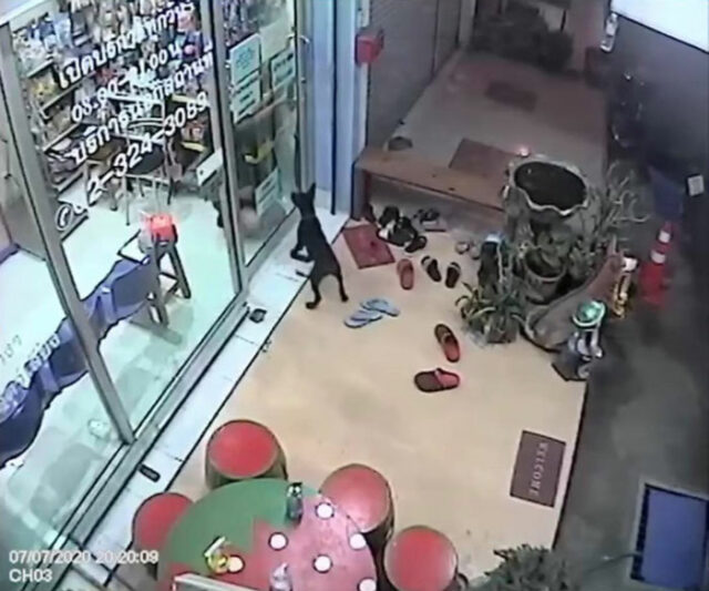 The Putahracsa Veterinary Clinic in Bang Pu posted surveillance video of the pup strolling up to their doorstep. He waited in front and barked, then put his paws up on the door until someone finally let him inside.