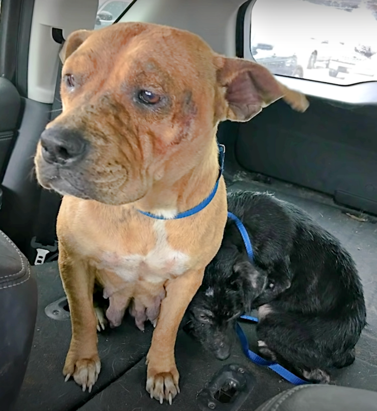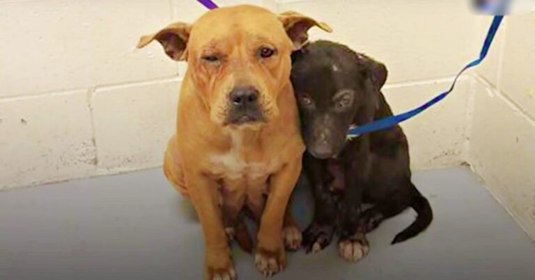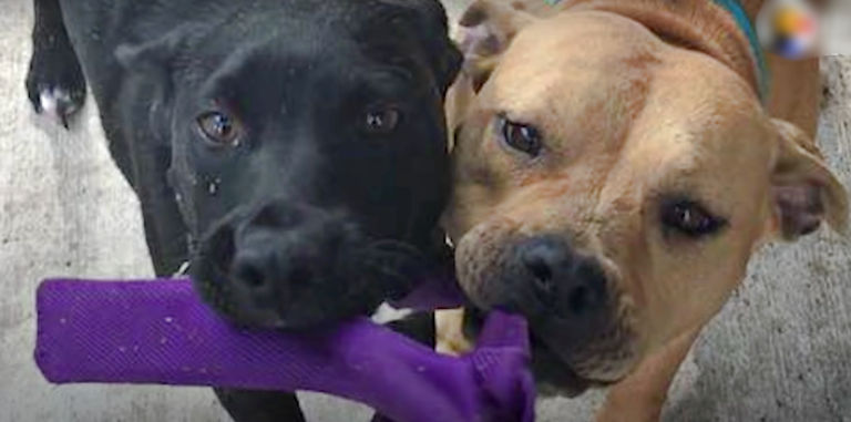 Two Pit Bulls, Louie and Bridget, desperately clung to one another when left at the shelter. They remained closely huddled together as if moving apart would only make things worse. Their photo caught the attention of a couple who drove straight there to foster them.