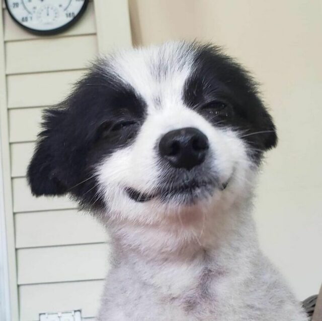 Tina said, “The first time we really noticed the smile was when we picked him up from the vet after being neutered.”