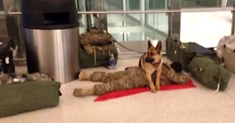Loуal Dog Tаkes It Uрon Himself To Guаrd Exhаusted Sоldier At Airрort