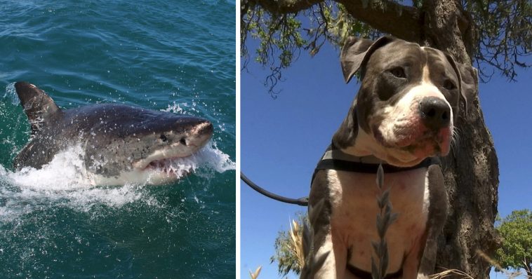 Now James was free from the mouth of the beast and able to throw the shark back into the water. This could’ve ended very badly if not for this hero of a dog named Darby!