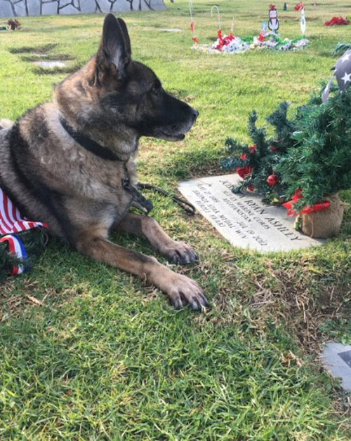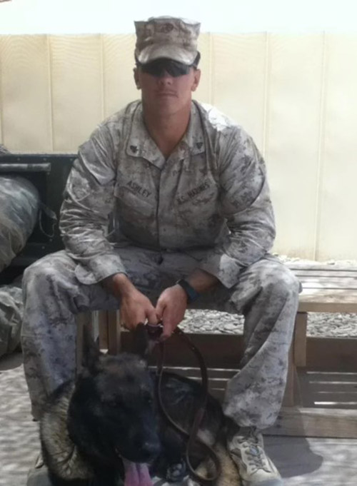 Ashley’s son, Marine Sgt. Joshua Ashley, a military dog handler, was murdered in 2012 after being struck by an IED while leading a patrol out of Zombalay Village in the Helmand Valley of Afghanistan. He was 23. Sirius, his dog, lived.
