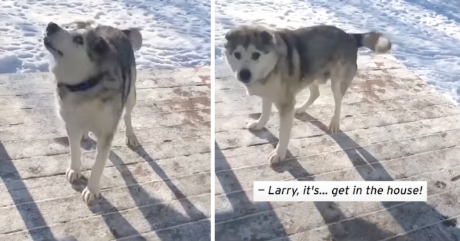 Huskies will be Huskies! But Mom and Dad know what’s best for their dog and tell him it’s time to come back inside from the cold snow… Larry sure does love this extreme Ontario weather!
