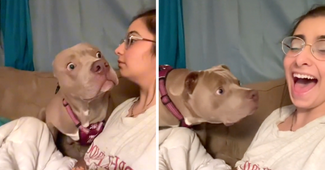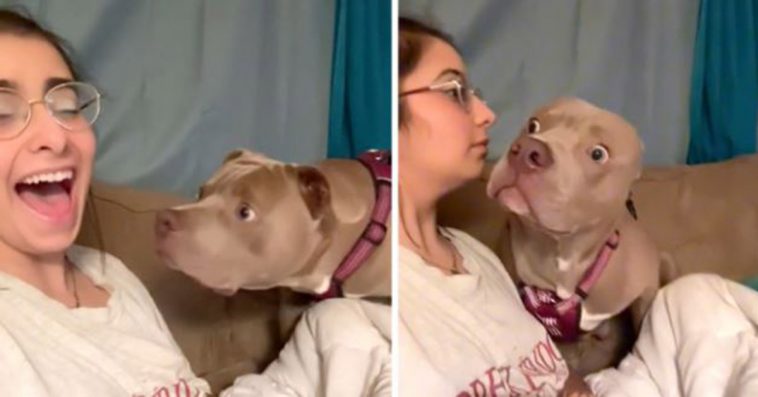 Adrian Chateau Wiles decided to partake in the “bark at your dog” challenge with the point being to see how they respond, and her pooch had the best reaction possible!