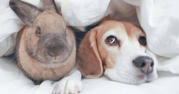 A Beagle named Chloe and a bunny named Rue are best friends and do everything together, including napping! Ever since the bunny was just a baby, the two have been close and very protective of each other.