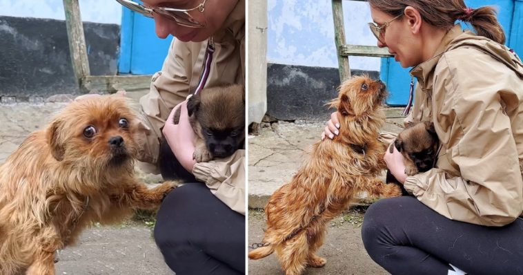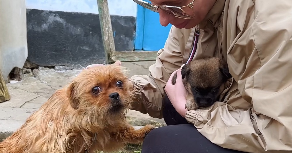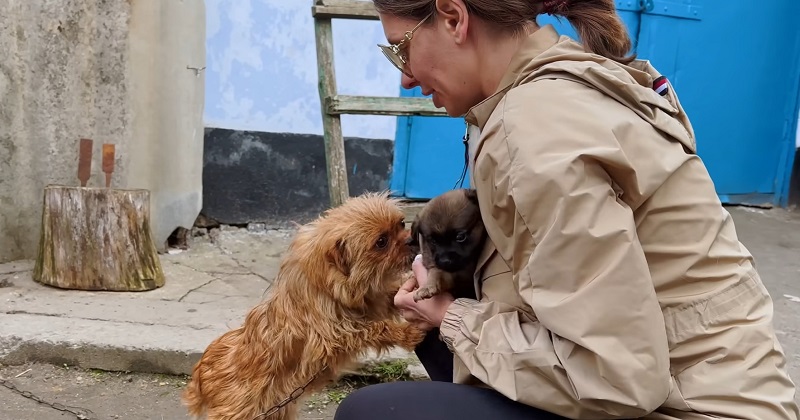 When the rescuers came, the dog’s owner informed them that the chained-up mom had recently given birth to four puppies. However, they drowned all the ladies while keeping the male. Despicable! When one of the rescuers bent down to greet Busya, she was relieved.