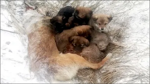 Seven puppies rescued after spending days by the body of mother dog who froze to deathRussia is known as one of the places with the most severe weather in the world, sometimes down to -55, even -66 degrees Celsius in the north, so stray animals are very unlikely to survive under this harsh cold. And then that sad ending happened to the mother dog below. In order to let the weak children live, the mother dog warmed her cubs with her body in the harsh cold until the last minute, the mother dog’s actions touched millions of hearts.