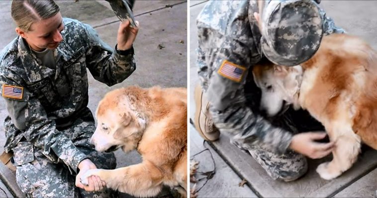 It’s always beautiful watching people reunite with their dogs, especially people who have been away from home for military service. For one young woman, there was no greater feeling in the world than coming home to see her old dog again—and they’re reunion was truly beautiful.