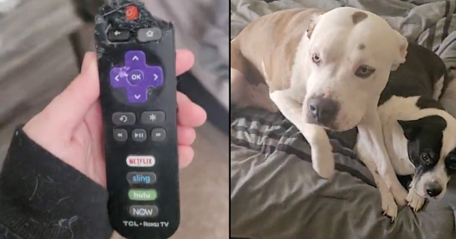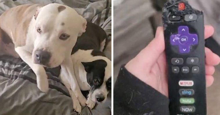 I work from home and found the evidence on the bed, then found the eaten remote and knew exactly who did it because he has a record of 7 remotes, multiple hats, wallets, and graded homework,” she said.
