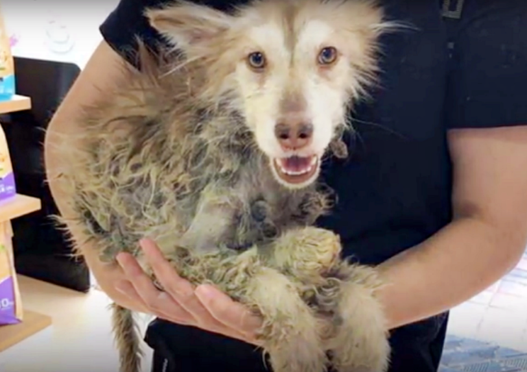 It was obvious that this poor Husky pup had been neglected for quite some time.
