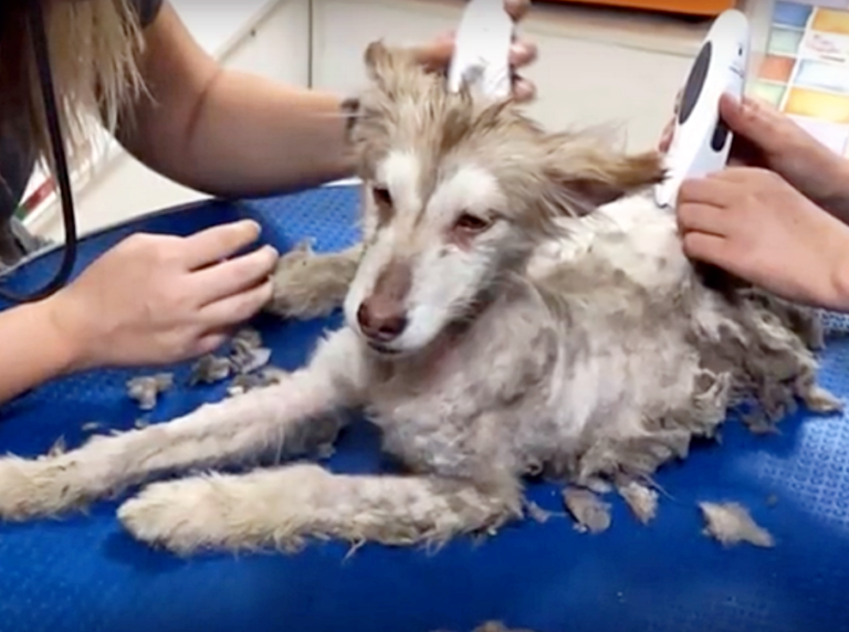 Fortunately, aside from the obvious ailments, Harriet was pretty healthy. The first thing they did was give her a bath and shave off her filthy tangled fur.