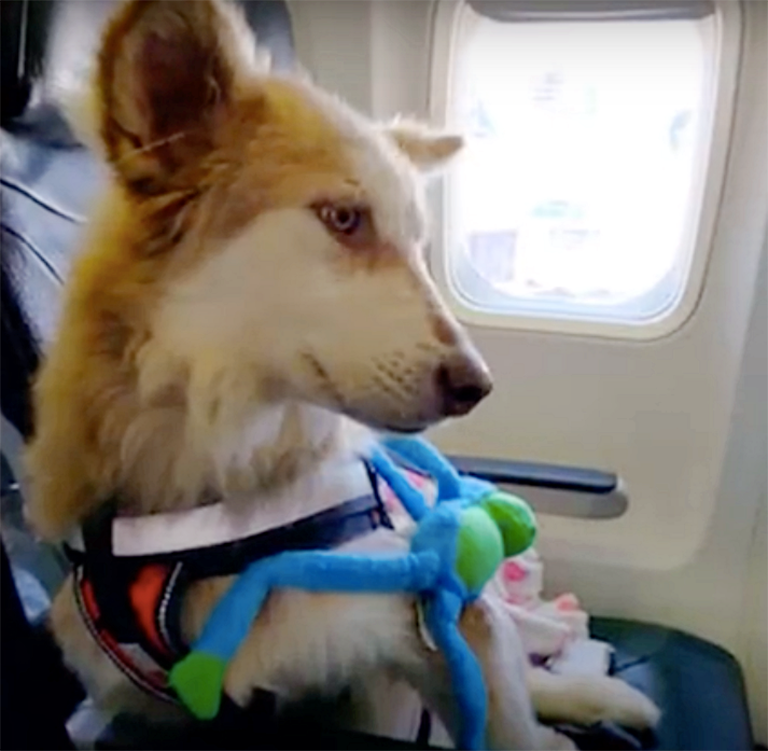A volunteer flew Harriet to San Francisco, where she would meet her new mom for the first time.