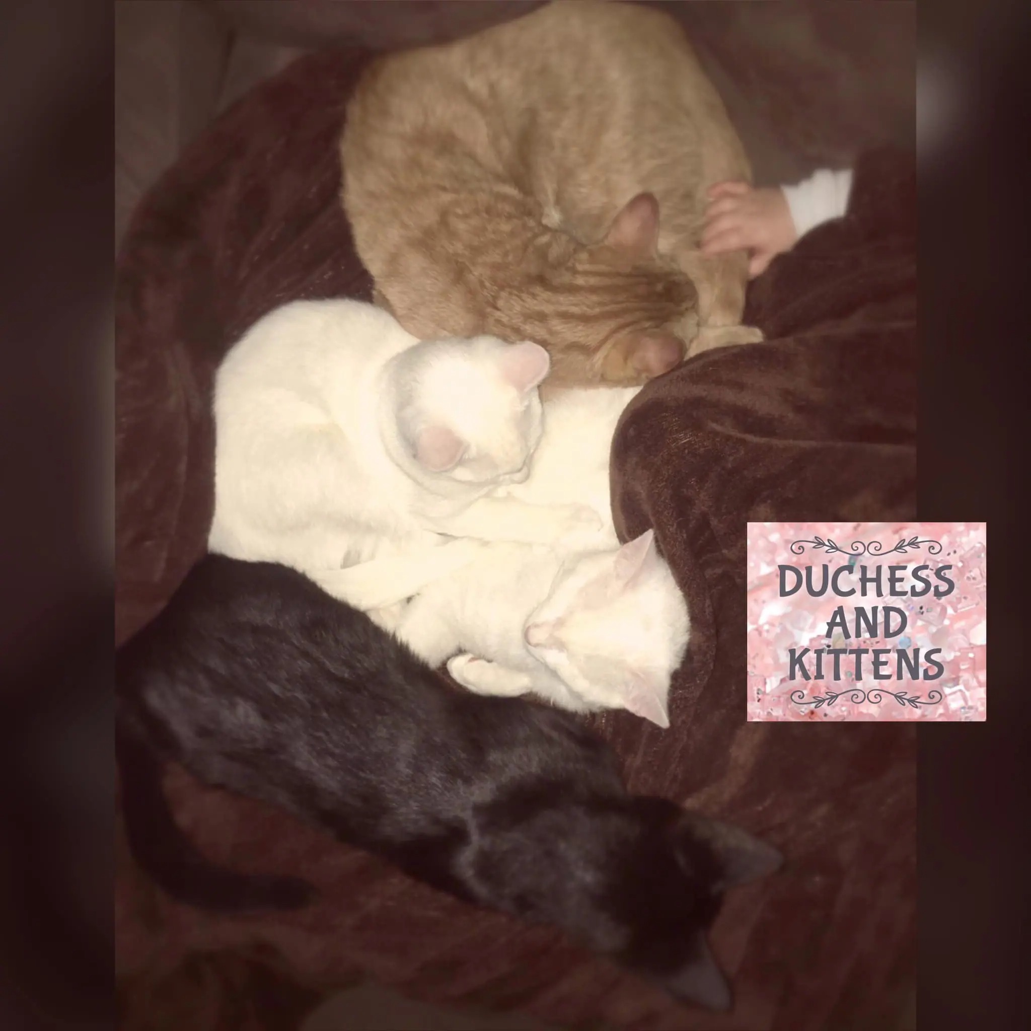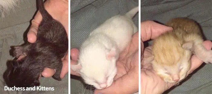 One day, Shelby and her partner found Duchess in a closet. They were not sure what was going on until they saw a little kitten, which they initially thought was a mouse, lying next to her. To their surprise, she was in labor and was in the middle of delivering 3 more furbabies.