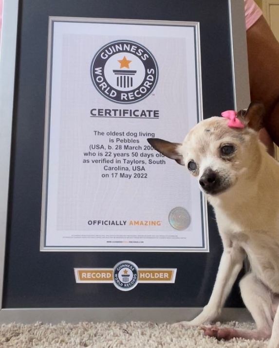 Pebbles was verified as the world’s oldest dog in May 2022 after her owners realized their pup was actually older than the previous record holder, TobyKeith.